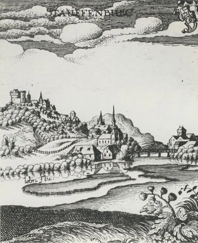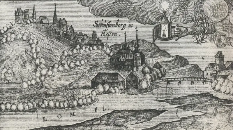Wilhelm Dilich veröffentlicht in diesem Jahr seine "Synopsis descriptionis totius Hassiae" mit 50 Federzeichnungen hessischer Städte. Darunter befindet sich auch eine Ansicht von Staufenberg mit dem Kirchberg, der Lahn und Ruttershausen im Vordergrund. Auf dieser Zeichnung, gleichzeitig die älteste Ansicht unseres Dorfes, sieht man bereits eine Brücke über die Lahn und in Ruttershausen den Turm des adeligen Gutshofes.